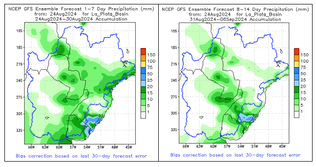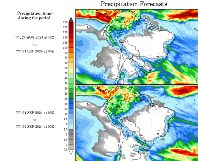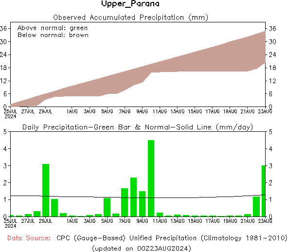 El pronóstico Hidrometeorológico del Centro Climático de referencia indica una tendencia semanal de poca significancia hidrológica en la cuenca de interés para la CHY con dispersión geográfica según sea la fuente consultada. (Ver gráfico Nro. 1).
