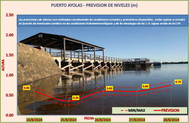 Las previsiones de Alturas son realizadas considerando las condiciones actuales y pronósticos disponibles y están sujetas a revisión en función de eventuales cambios en las condiciones hidrometeorológicas y de las descargas de las C.H. aguas arriba de la CHY.