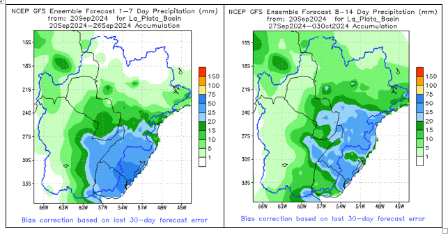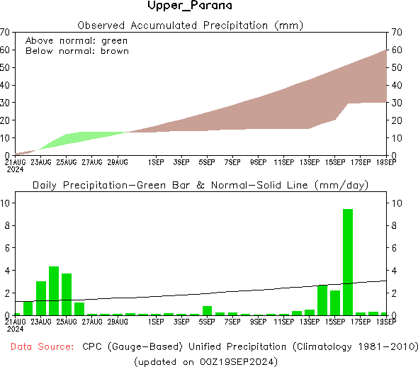 El pronóstico Hidrometeorológico del Centro Climático de referencia indica una tendencia semanal de poca significancia hidrológica en la cuenca de interés para la CHY con dispersión geográfica según sea la fuente consultada. (Ver gráfico Nro. 1).