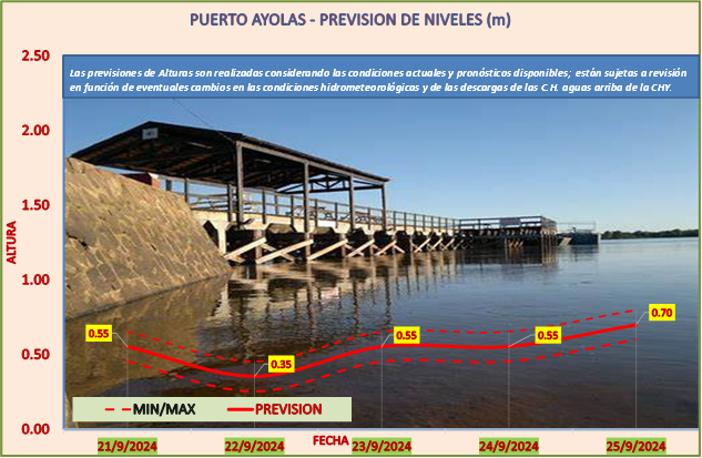 Las previsiones de Alturas son realizadas considerando las condiciones actuales y pronósticos disponibles y están sujetas a revisión en función de eventuales cambios en las condiciones hidrometeorológicas y de las descargas de las C.H. aguas arriba de la CHY.