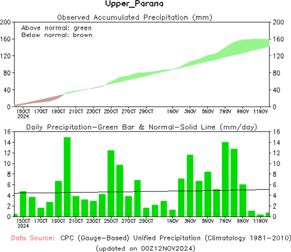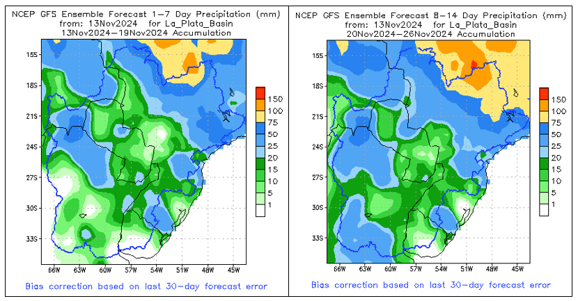 El pronóstico Hidrometeorológico del Centro Climático de referencia indica una tendencia semanal de leve significancia hidrológica en la cuenca de interés para la CHY con dispersión geográfica según sea la fuente consultada. (Ver gráfico Nro. 1).
