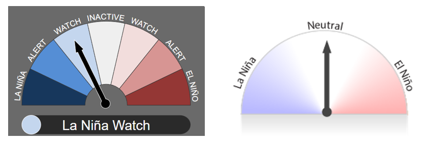 El fenómeno de El Niño-Oscilación del Sur (ENSO) es neutro, y tanto las temperaturas superficiales del mar (TSM) en el Océano Pacífico ecuatorial central como los patrones atmosféricos se encuentran en niveles neutros respecto de El Niño. Los índices atmosféricos, como los relacionados con los patrones de presión superficial, nubes y vientos alisios, son en general consistentes con un estado neutro respecto de El Niño. Aunque algunos han mostrado señales similares a las de La Niña durante las últimas semanas, estas señales no han sido consistentes.