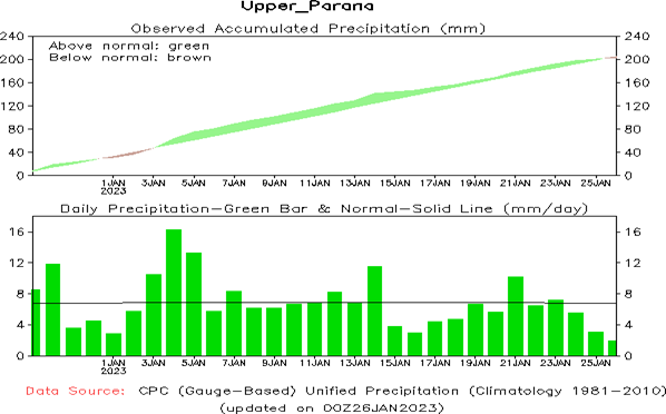 El pronóstico Hidrometeorológico del Centro Climático de referencia indica una tendencia semanal de significancia hidrológica en la cuenca de interés para la CHY con dispersión geográfica según sea la fuente consultada. (Ver gráfico Nro. 1).