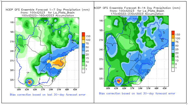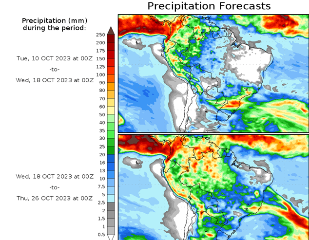El pronóstico Hidrometeorológico del Centro Climático de referencia indica una tendencia semanal de significancia hidrológica en la cuenca de interés para la CHY con dispersión geográfica según sea la fuente consultada. (Ver gráfico Nro. 1).