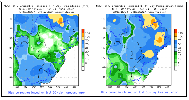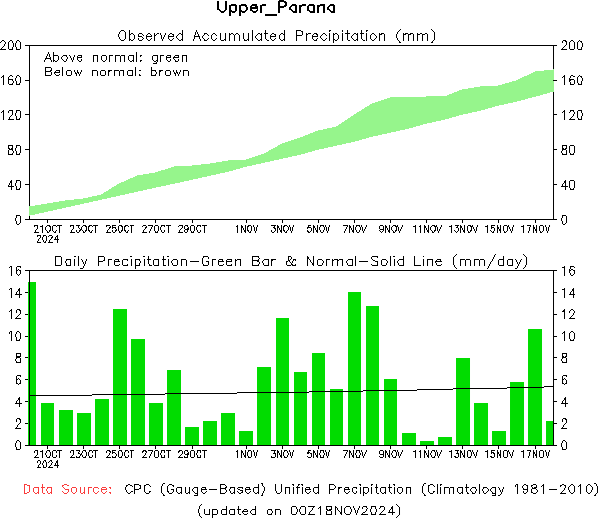 El pronóstico Hidrometeorológico del Centro Climático de referencia indica una tendencia semanal de leve significancia hidrológica en la cuenca de interés para la CHY con dispersión geográfica según sea la fuente consultada. (Ver gráfico Nro. 1).