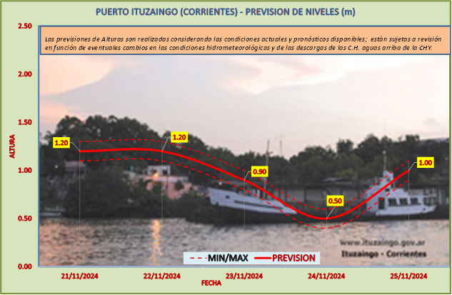 Las previsiones de Alturas son realizadas considerando las condiciones actuales y pronósticos disponibles y están sujetas a revisión en función de eventuales cambios en las condiciones hidrometeorológicas y de las descargas de las C.H. aguas arriba de la CHY.