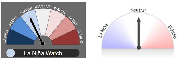 El fenómeno de El Niño-Oscilación del Sur (ENSO) es neutro, y tanto las temperaturas superficiales del mar (TSM) en el Océano Pacífico ecuatorial central como los patrones atmosféricos se encuentran en niveles neutros respecto de El Niño. Los índices atmosféricos, como los relacionados con los patrones de presión superficial, nubes y vientos alisios, son en general consistentes con un estado neutro respecto de El Niño. Aunque algunos han mostrado señales similares a las de La Niña durante las últimas semanas, estas señales no han sido consistentes.