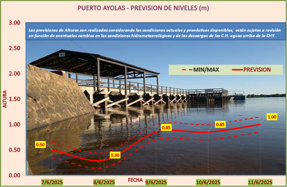 Las previsiones de Alturas son realizadas considerando las condiciones actuales y pronósticos disponibles y están sujetas a revisión en función de eventuales cambios en las condiciones hidrometeorológicas y de las descargas de las C.H. aguas arriba de la CHY.
