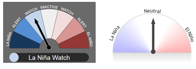 El fenómeno de El Niño-Oscilación del Sur (ENOS) es neutro. El último valor de Niño 3.4 para la semana que finalizó el 18 de mayo fue de -0,01 °C. Los valores neutros de ENOS se encuentran entre -0,8 °C y +0,8 °C.