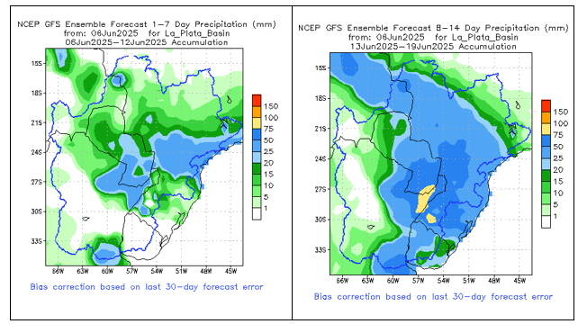 El pronóstico Hidrometeorológico del Centro Climático de referencia indica una tendencia semanal de poca significancia hidrológica en la cuenca de interés para la CHY con dispersión geográfica según sea la fuente consultada. (Ver gráfico Nro. 1).