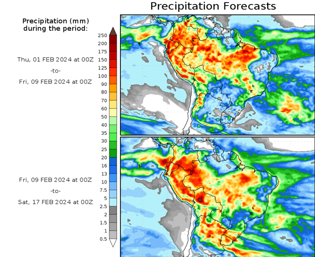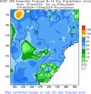 El pronóstico Hidrometeorológico del Centro Climático de referencia indica una tendencia semanal de poca significancia hidrológica en la cuenca de interés para la CHY con dispersión geográfica según sea la fuente consultada. (Ver gráfico Nro. 1).