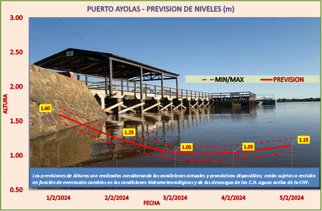 Las previsiones de Alturas son realizadas considerando las condiciones actuales y pronósticos disponibles y están sujetas a revisión en función de eventuales cambios en las condiciones hidrometeorológicas y de las descargas de las C.H. aguas arriba de la CHY.