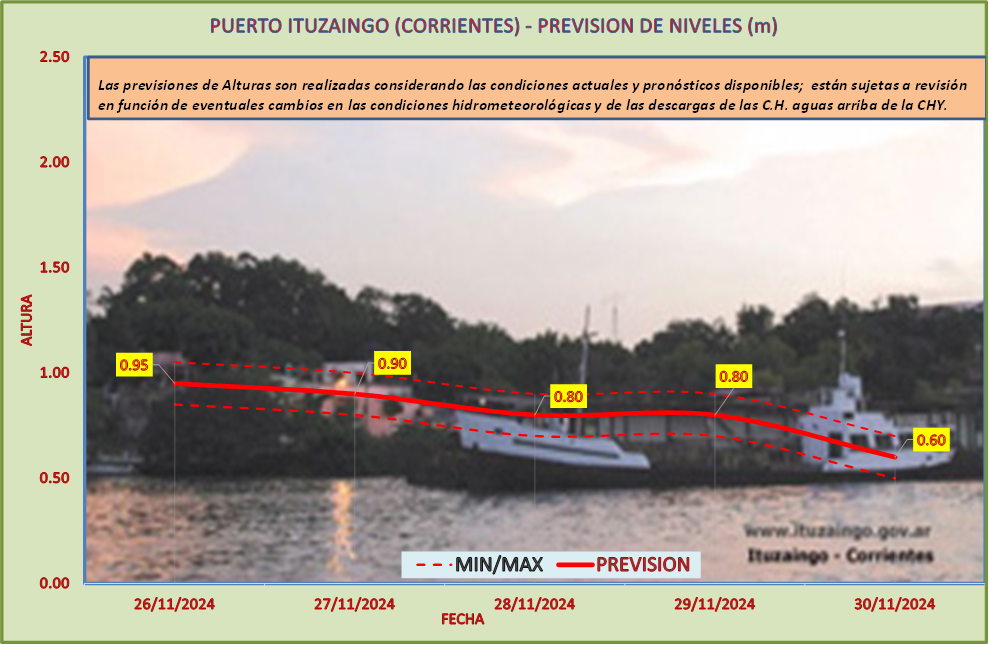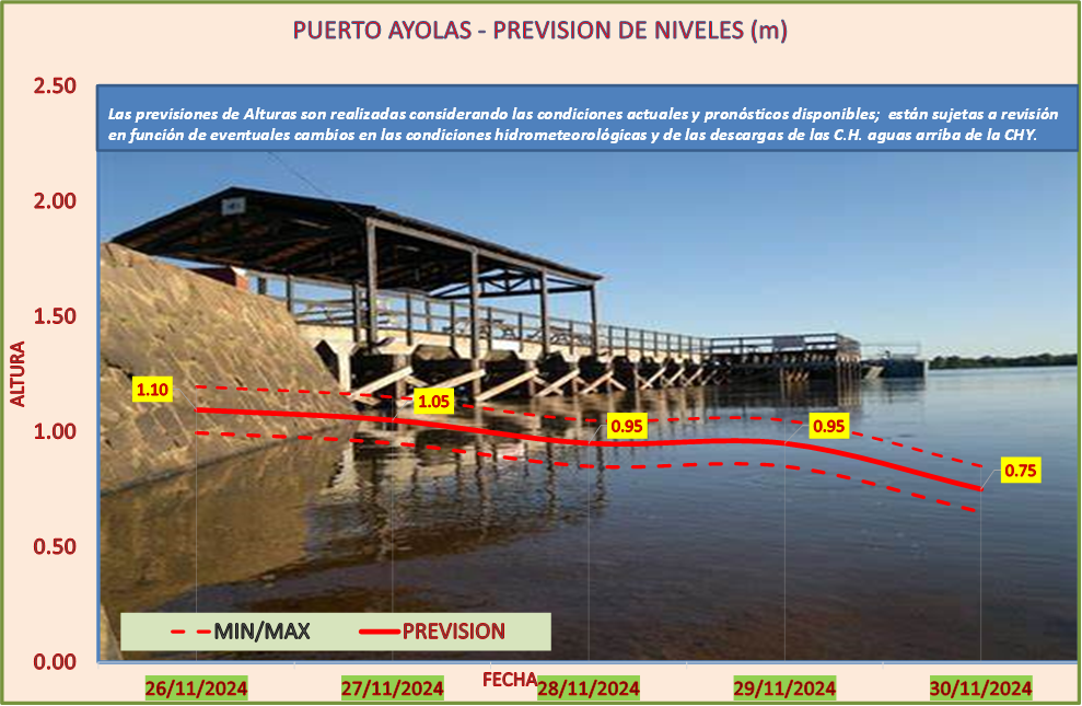 Las previsiones de Alturas son realizadas considerando las condiciones actuales y pronósticos disponibles y están sujetas a revisión en función de eventuales cambios en las condiciones hidrometeorológicas y de las descargas de las C.H. aguas arriba de la CHY.