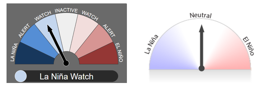 El fenómeno de El Niño-Oscilación del Sur (ENSO) es neutro, y tanto las temperaturas superficiales del mar (TSM) en el Océano Pacífico ecuatorial central como los patrones atmosféricos se encuentran en niveles neutros respecto de El Niño. Los índices atmosféricos, como los relacionados con los patrones de presión superficial, nubes y vientos alisios, son en general consistentes con un estado neutro respecto de El Niño. Aunque algunos han mostrado señales similares a las de La Niña durante las últimas semanas, estas señales no han sido consistentes.