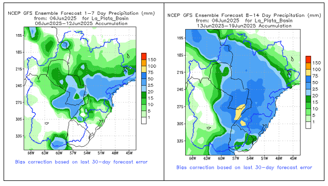 El pronóstico Hidrometeorológico del Centro Climático de referencia indica una tendencia semanal de poca significancia hidrológica en la cuenca de interés para la CHY con dispersión geográfica según sea la fuente consultada. (Ver gráfico Nro. 1).