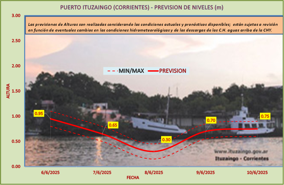 Las previsiones de Alturas son realizadas considerando las condiciones actuales y pronósticos disponibles y están sujetas a revisión en función de eventuales cambios en las condiciones hidrometeorológicas y de las descargas de las C.H. aguas arriba de la CHY.