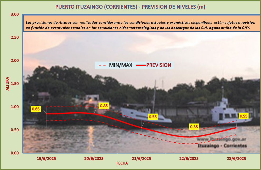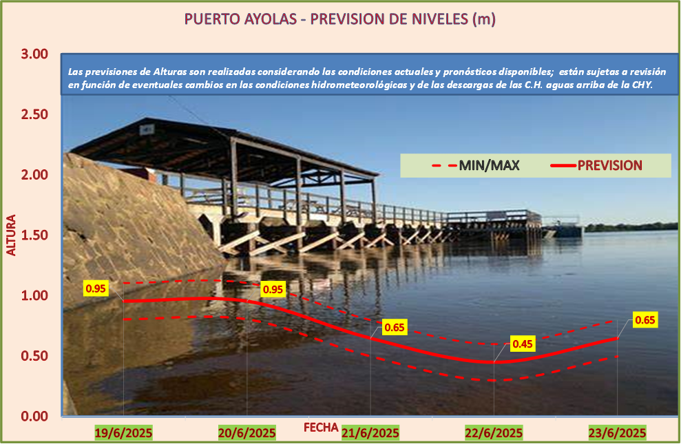 Las previsiones de Alturas son realizadas considerando las condiciones actuales y pronósticos disponibles y están sujetas a revisión en función de eventuales cambios en las condiciones hidrometeorológicas y de las descargas de las C.H. aguas arriba de la CHY.