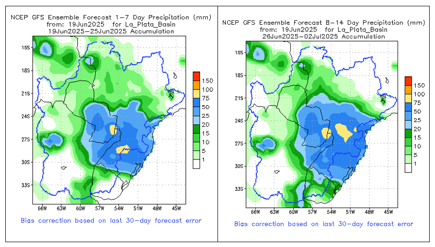 El pronóstico Hidrometeorológico del Centro Climático de referencia indica una tendencia semanal de significancia hidrológica en la cuenca de interés para la CHY con dispersión geográfica según sea la fuente consultada. (Ver gráfico Nro. 1).