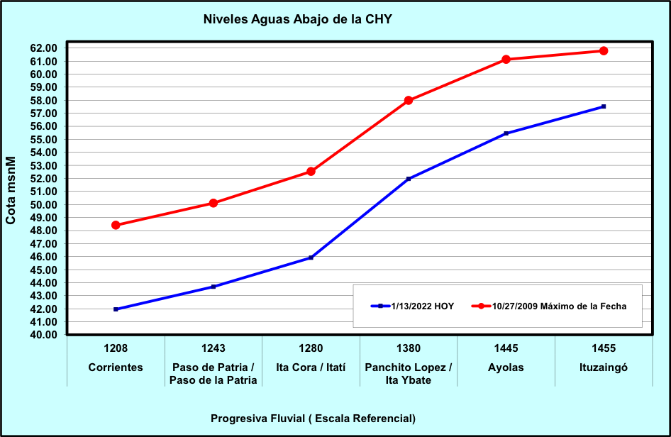 REFERENCIA: a modo de información – valores que originan riesgos de inundación en la zona de Ayolas.