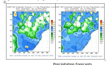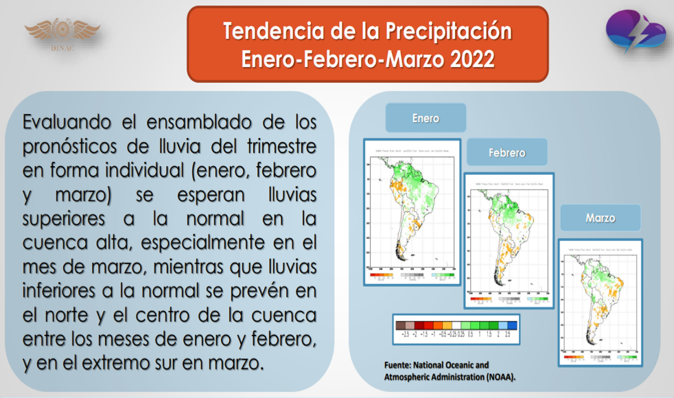 El pronóstico Hidrometeorológico del Centro Climático de referencia indica una tendencia semanal de poca significancia hidrológica en la cuenca de interés para la CHY con dispersión geográfica según sea la fuente consultada. (Ver gráfico Nro. 1).