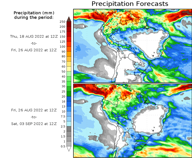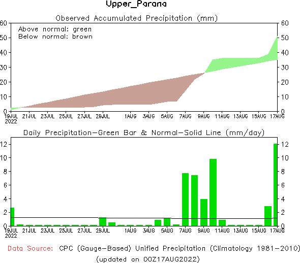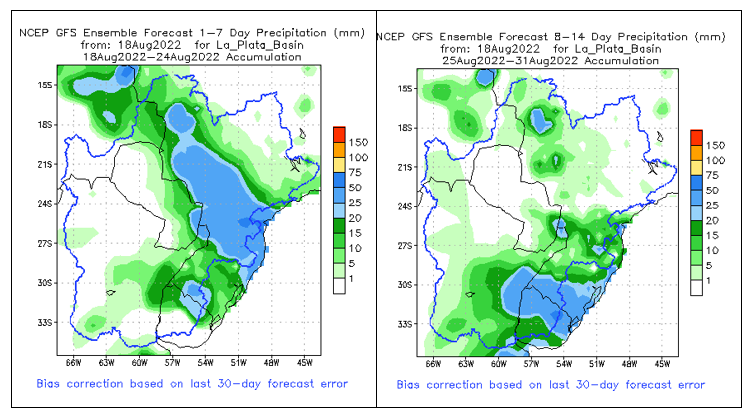 El pronóstico Hidrometeorológico del Centro Climático de referencia indica una tendencia semanal de significancia hidrológica en la cuenca de interés para la CHY con dispersión geográfica según sea la fuente consultada. (Ver gráfico Nro. 1).