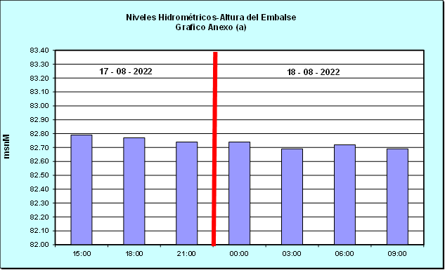 Nivel de Ayer (06:00 hs) = 82.85 mSNM Nivel de Hoy (06:00 hs) = 82.72 Msnm