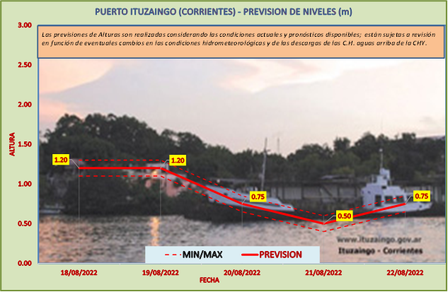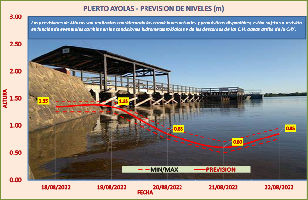 Las previsiones de Alturas son realizadas considerando las condiciones actuales y pronósticos disponibles y están sujetas a revisión en función de eventuales cambios en las condiciones hidrometeorológicas y de las descargas de las C.H. aguas arriba de la CHY.