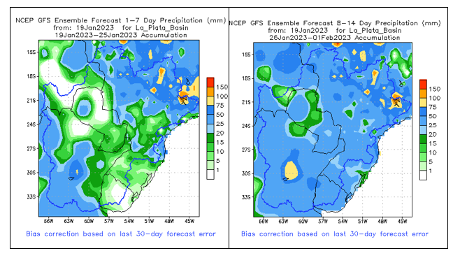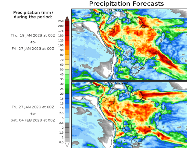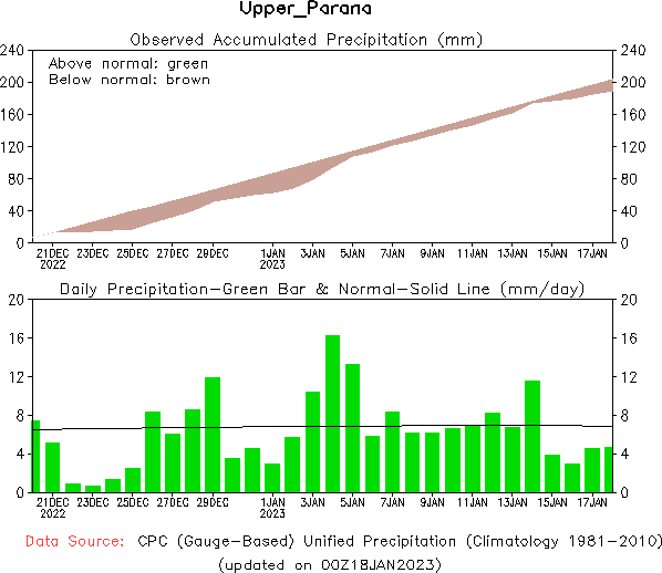 El pronóstico Hidrometeorológico del Centro Climático de referencia indica una tendencia semanal de poca significancia hidrológica en la cuenca de interés para la CHY con dispersión geográfica según sea la fuente consultada. (Ver gráfico Nro. 1).