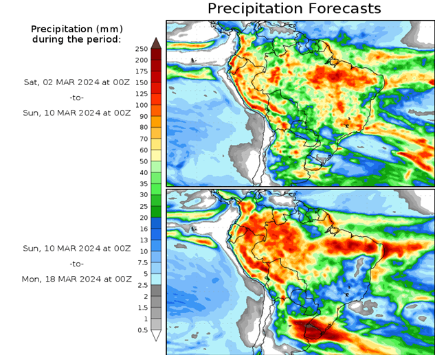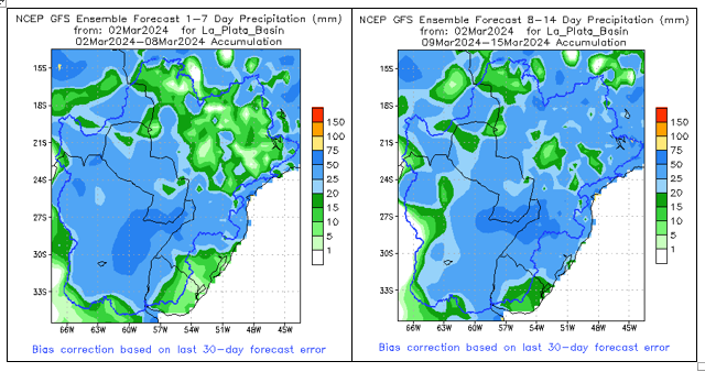 El pronóstico Hidrometeorológico del Centro Climático de referencia indica una tendencia semanal de poca significancia hidrológica en la cuenca de interés para la CHY con dispersión geográfica según sea la fuente consultada. (Ver gráfico Nro. 1).