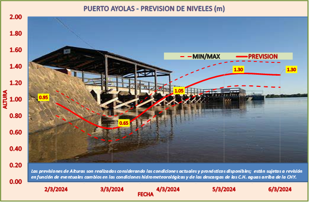 Las previsiones de Alturas son realizadas considerando las condiciones actuales y pronósticos disponibles y están sujetas a revisión en función de eventuales cambios en las condiciones hidrometeorológicas y de las descargas de las C.H. aguas arriba de la CHY.