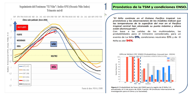 La evolución de índices climáticos publicados por organismos especializados de referencia, vinculados con la previsión del fenómeno caracterizado como “El Niño”, hace prever con un grado de probabilidad alto, que durante el periodo enero y marzo 2024 podrían verificarse eventos hidrológicos asociados a situaciones de aguas altas.