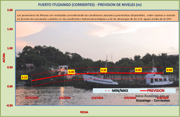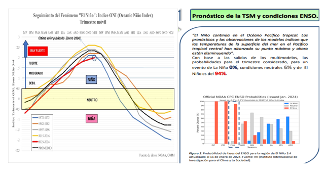 La evolución de índices climáticos publicados por organismos especializados de referencia, vinculados con la previsión del fenómeno caracterizado como “El Niño”, hace prever con un grado de probabilidad alto, que durante el periodo enero y marzo 2024 podrían verificarse eventos hidrológicos asociados a situaciones de aguas altas.