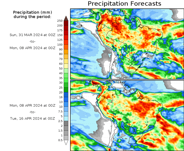 El pronóstico Hidrometeorológico del Centro Climático de referencia indica una tendencia semanal de poca significancia hidrológica en la cuenca de interés para la CHY con dispersión geográfica según sea la fuente consultada. (Ver gráfico Nro. 1).