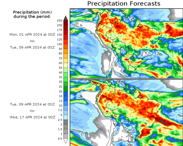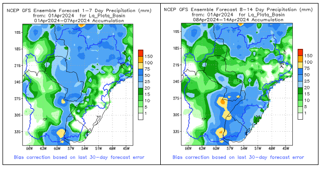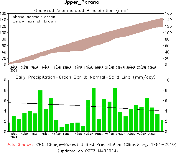 El pronóstico Hidrometeorológico del Centro Climático de referencia indica una tendencia semanal de poca significancia hidrológica en la cuenca de interés para la CHY con dispersión geográfica según sea la fuente consultada. (Ver gráfico Nro. 1).