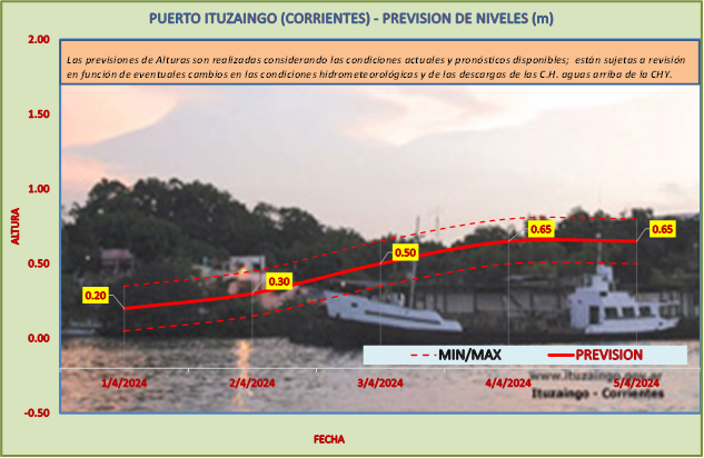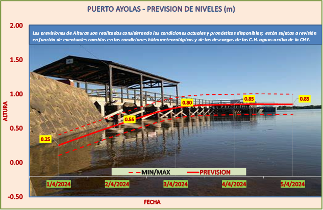 Las previsiones de Alturas son realizadas considerando las condiciones actuales y pronósticos disponibles y están sujetas a revisión en función de eventuales cambios en las condiciones hidrometeorológicas y de las descargas de las C.H. aguas arriba de la CHY.