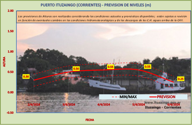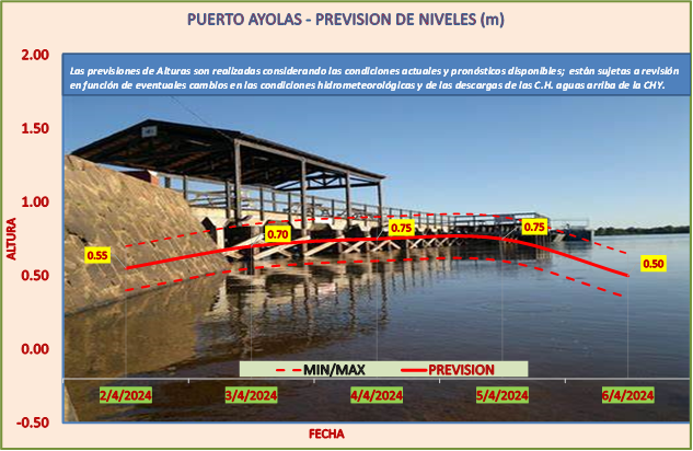 Las previsiones de Alturas son realizadas considerando las condiciones actuales y pronósticos disponibles y están sujetas a revisión en función de eventuales cambios en las condiciones hidrometeorológicas y de las descargas de las C.H. aguas arriba de la CHY.