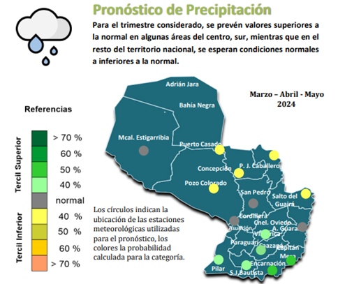 El pronóstico Hidrometeorológico del Centro Climático de referencia indica una tendencia semanal de leve significancia hidrológica en la cuenca de interés para la CHY con dispersión geográfica según sea la fuente consultada. (Ver gráfico Nro. 1).