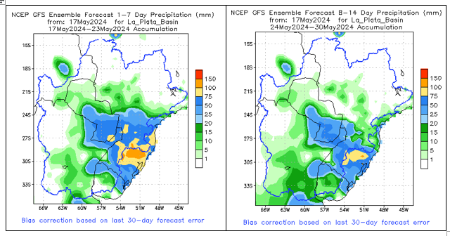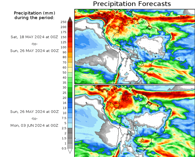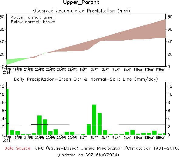 El pronóstico Hidrometeorológico del Centro Climático de referencia indica una tendencia semanal de leve significancia hidrológica en la cuenca de interés para la CHY con dispersión geográfica según sea la fuente consultada. (Ver gráfico Nro. 1).