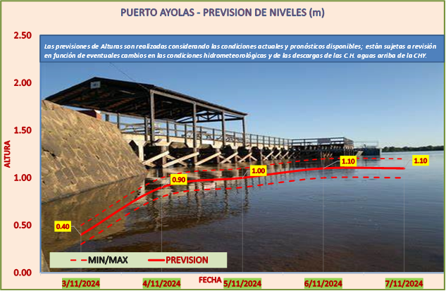 Las previsiones de Alturas son realizadas considerando las condiciones actuales y pronósticos disponibles y están sujetas a revisión en función de eventuales cambios en las condiciones hidrometeorológicas y de las descargas de las C.H. aguas arriba de la CHY.