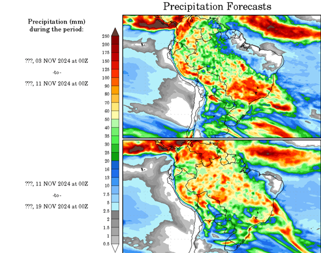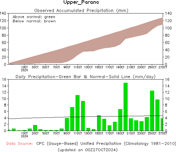 El pronóstico Hidrometeorológico del Centro Climático de referencia indica una tendencia semanal de leve significancia hidrológica en la cuenca de interés para la CHY con dispersión geográfica según sea la fuente consultada. (Ver gráfico Nro. 1).