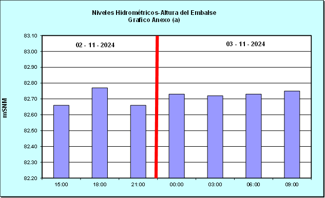Nivel de Ayer (06:00 hs) = 82.71 mSNM Nivel de Hoy (06:00 hs) = 82.72 mSNM