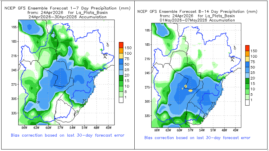 El pronóstico Hidrometeorológico del Centro Climático de referencia indica una tendencia semanal de poca significancia hidrológica en la cuenca de interés para la CHY con dispersión geográfica según sea la fuente consultada. (Ver gráfico Nro. 1).