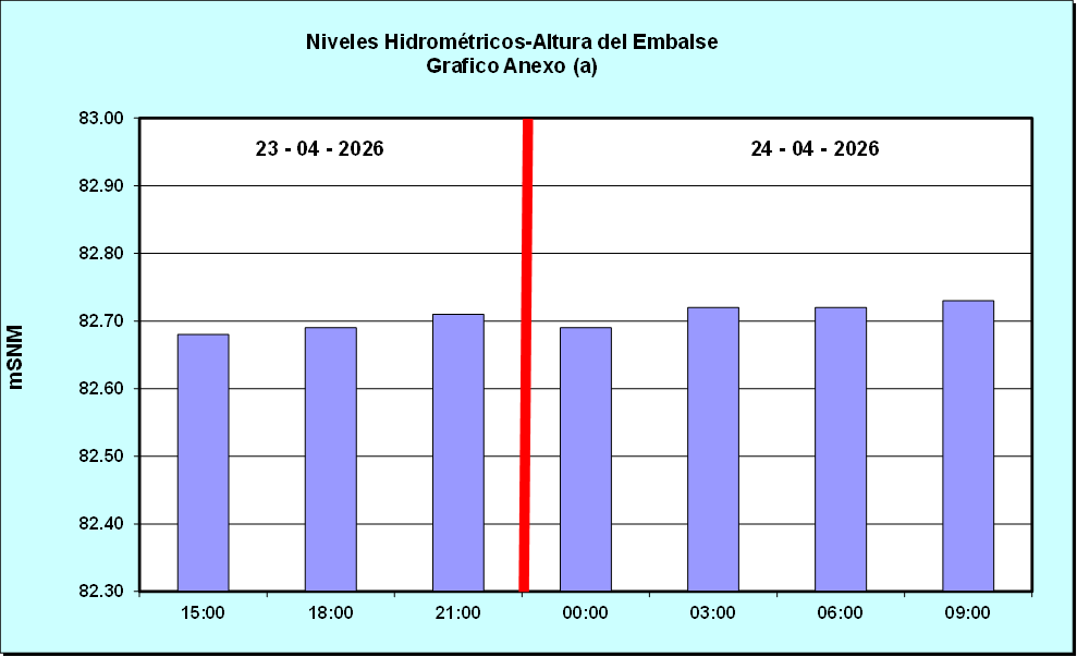 Nivel de Ayer (06:00 hs) = 82.72 mSNM Nivel de Hoy (06:00 hs) = 82.72 mSNM