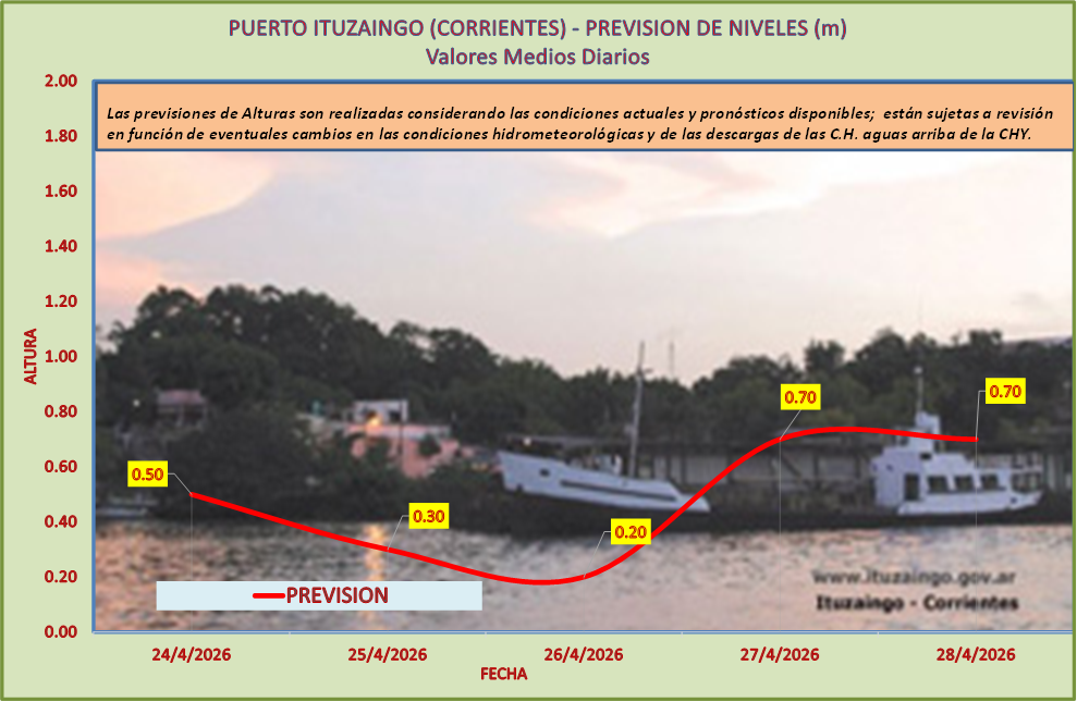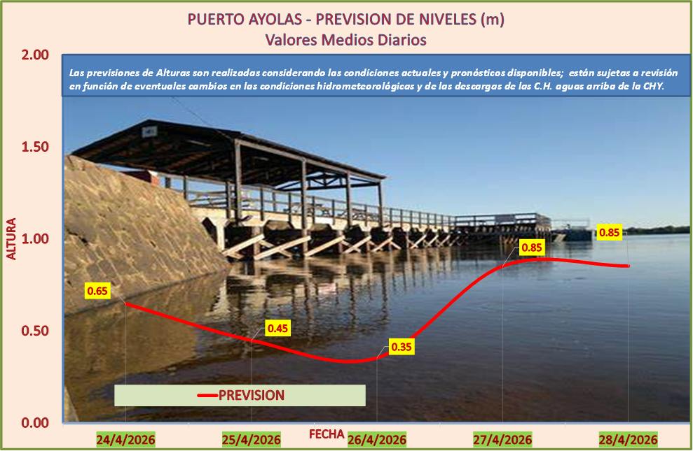 Las previsiones de Alturas son realizadas considerando las condiciones actuales y pronósticos disponibles y están sujetas a revisión en función de eventuales cambios en las condiciones hidrometeorológicas y de las descargas de las C.H. aguas arriba de la CHY.