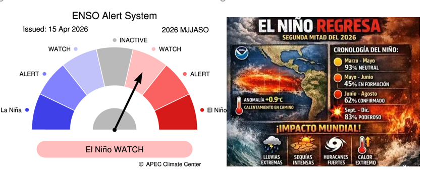 Mayor probabilidad de que se produzca El Niño a finales de 2026.