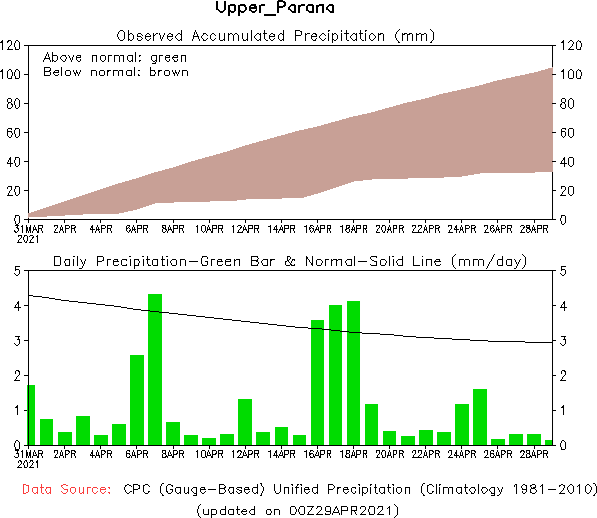 El pronóstico Hidrometeorológico del Centro Climático de referencia indica una tendencia semanal de poca significancia hidrológica en la cuenca de interés para la CHY con dispersión geográfica según sea la fuente consultada. (Ver gráfico Nro. 1).