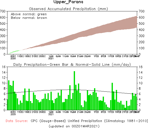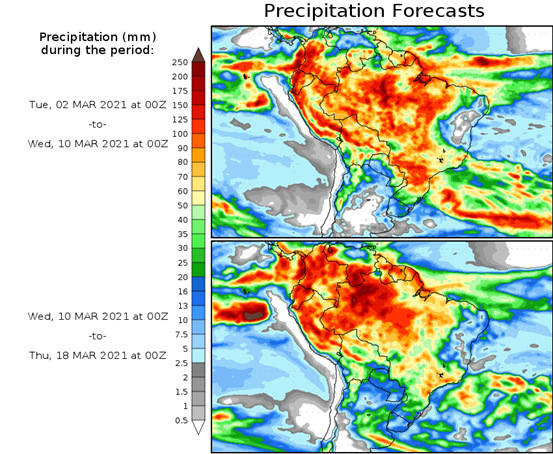 El pronóstico Hidrometeorológico del Centro Climático de referencia indica una tendencia semanal de poca significancia hidrológica en la cuenca de interés para la CHY con dispersión geográfica según sea la fuente consultada. (Ver gráfico Nro. 1).