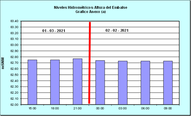 Nivel de Ayer (06:00 hs) = 82.85 mSNM Nivel de Hoy (06:00 hs) = 82.73 mSNM