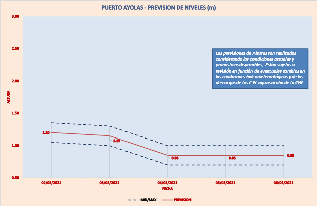 Las previsiones de Alturas son realizadas considerando las condiciones actuales y pronósticos disponibles y están sujetas a revisión en función de eventuales cambios en las condiciones hidrometeorológicas y de las descargas de las C.H. aguas arriba de la CHY.