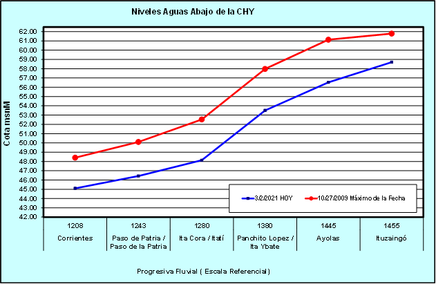 REFERENCIA: a modo de información – valores que originan riesgos de inundación en la zona de Ayolas.